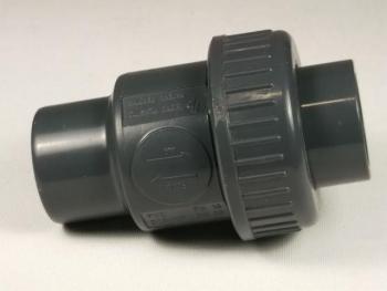 A single union spring check valve is a check valve that only allows fluid to flow in one direction. The resistance of the valve is controlled by a spring. The bottom end of the Single Union Spring Check Valve is detachable allowing for easy cleaning and maintenance.