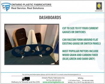 Dashboards can fade and crack over time due to age and constant exposure to sunlight. If you are thinking of restoring your dash, or just want to modernize it with a carbon fiber look, please send us a template and pictures and we will send you a quote!